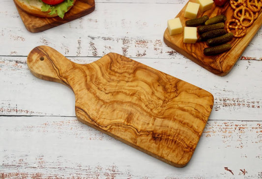 Olive Wood Cutting Board with Handle – 30 cm | Rustic Kitchen Tool